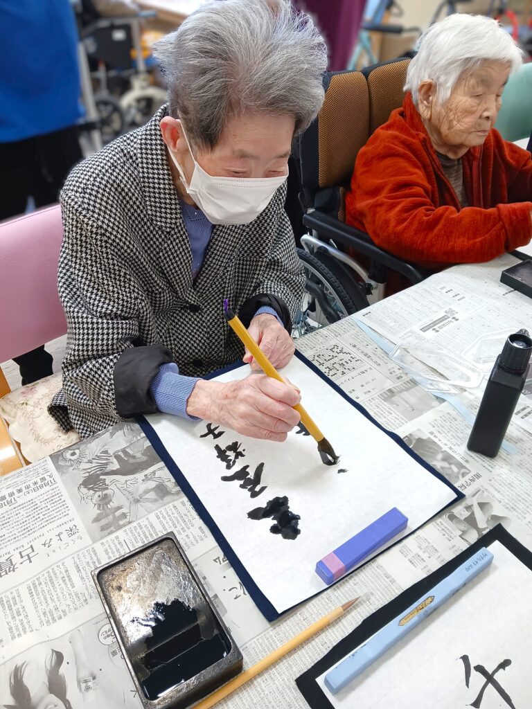 福笑い・コマ回し・あやとり・書初めなど…懐かしの遊びやお正月の行事を楽しみました^^