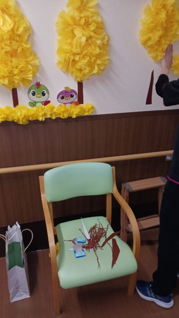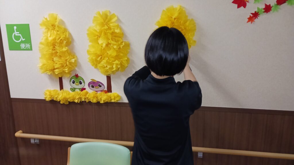 センス抜群の優秀な事務員2人のおかげで、可愛らしい銀杏紅葉の飾りつけが完成しました。